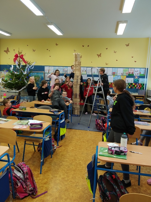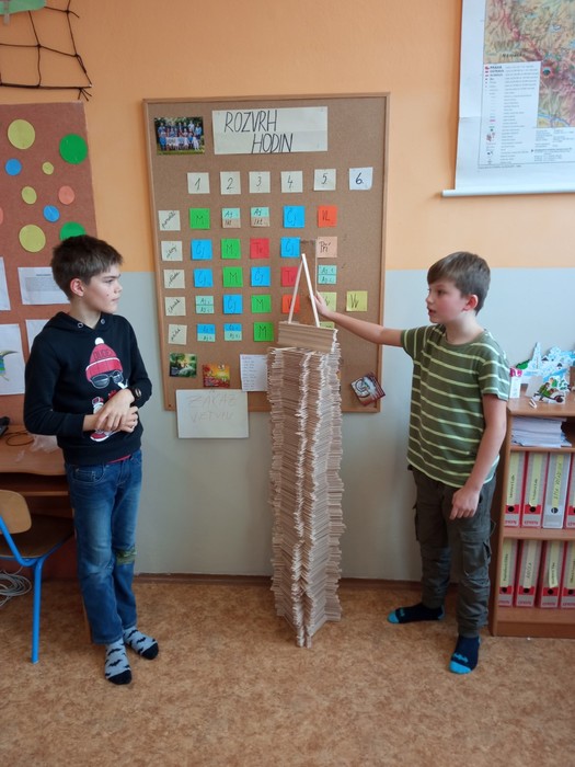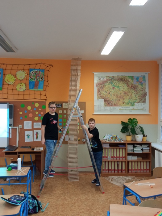 Zvítězí ta třída, které se podaří postavit nejvyšší věž bez použití spojovacího materiálu. Tzn. žádné lepidlo, provázek,...